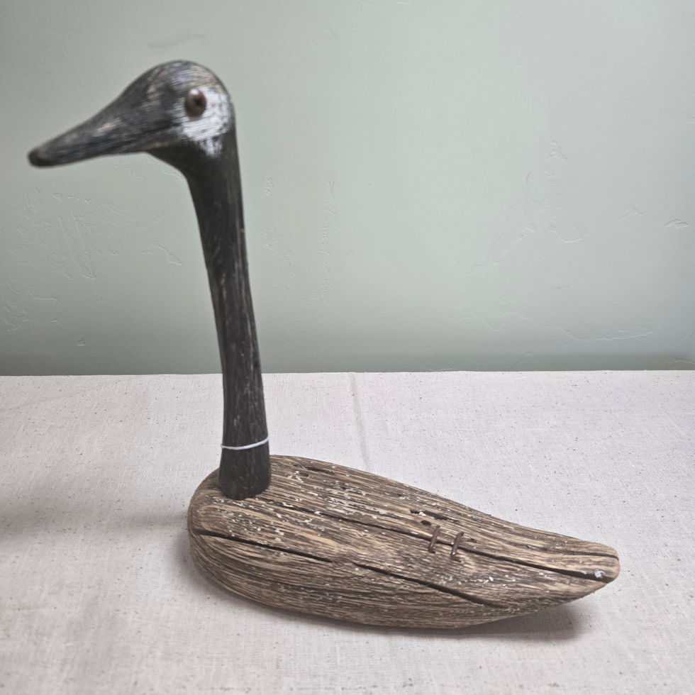 This wooden goose figurine adds a timeless touch of rustic charm to any home. With its hand-carved look, long neck, and weathered finish, it feels right at home in a farmhouse, cabin, or western-inspired space. A simple yet striking accent piece, it works beautifully on shelves, mantels, or as part of a country-style décor display.